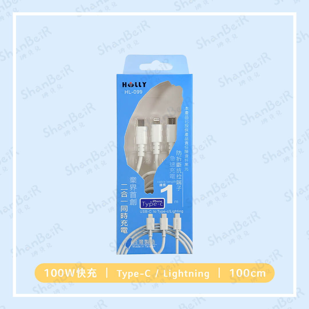 急速充電線 100W 二合一 快充線 Type-C / Lightning 1M