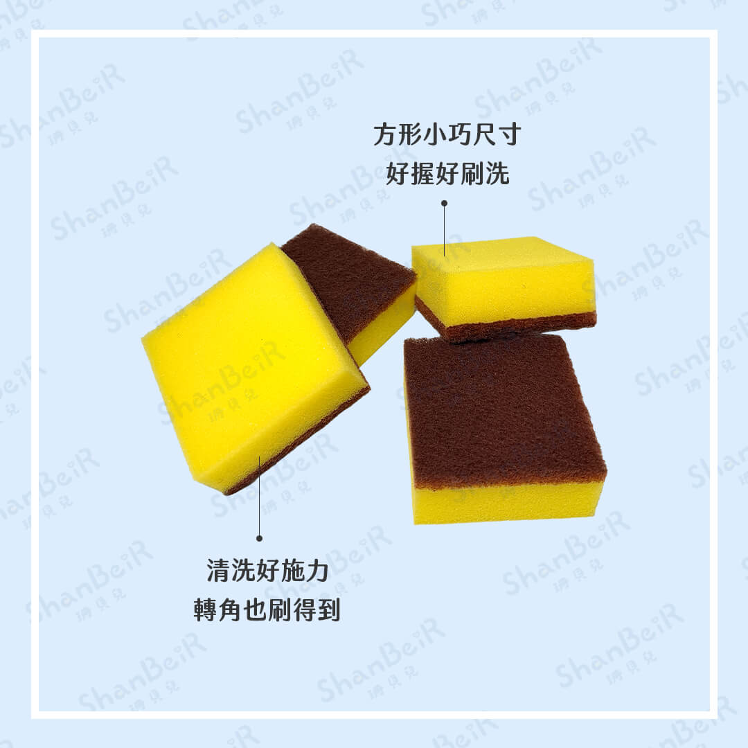 - 海綿結合菜瓜布兩種材質,用途多更多!