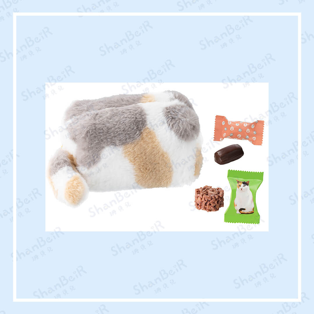 【包裝內容物】 • 脆巧克力+巧克力餅乾*5個+貓咪絨毛收納包